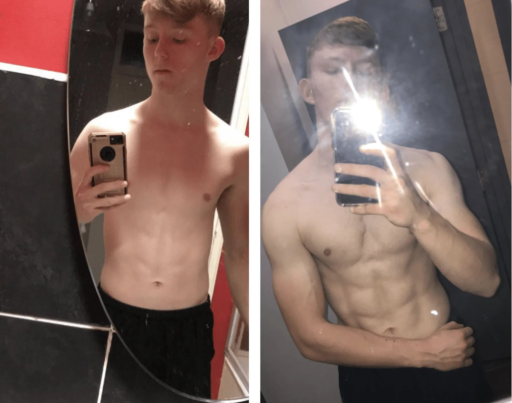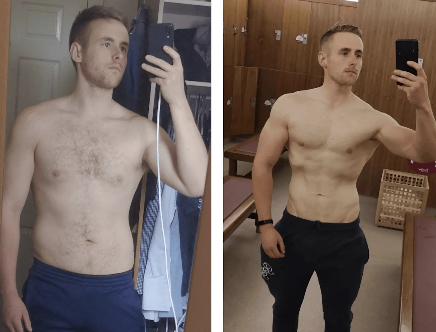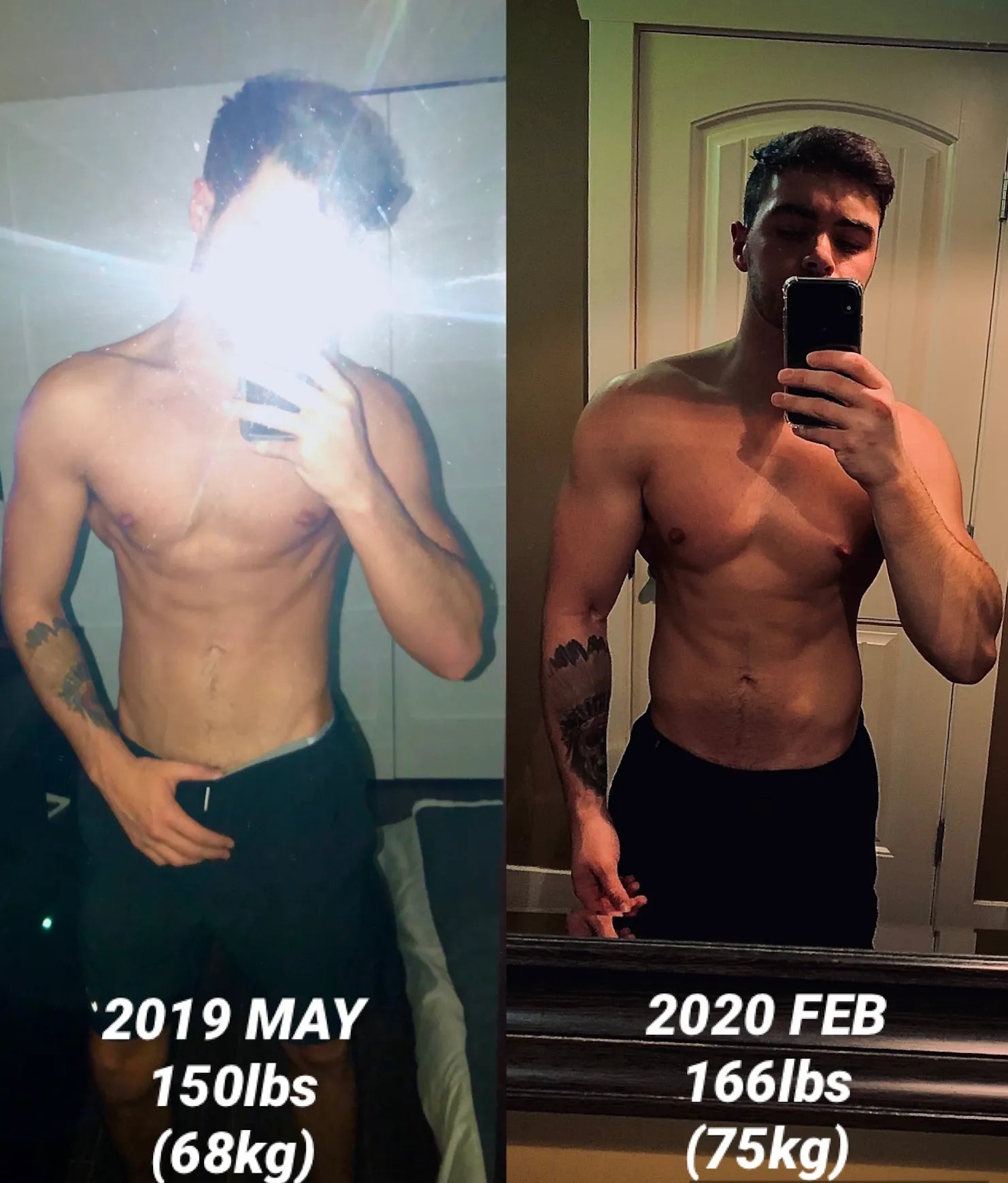 Started at 85 KG, Ended at 92 KG. Down from 14% BF to 10% BF.